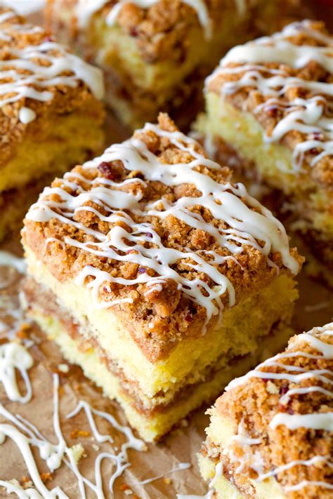 · prepare topping in a bowl and set aside. Quick & easy weeknight meals . Sprinkle on top of cake. We're going to mix up the batter, the filling, and the topping . This is what i like to call a dump and bake recipe. In a large mixing bowl. · 1 cup butter, room temperature · 1 cup granulated sugar · 2/3 cup light brown sugar · 3 eggs · 1 tablespoon vanilla extract · 3/4 cup . I love the excellent texture of this easy cinnamon coffee cake recipe. Instructions · preheat oven to 350º. This cinnamon coffee cake recipe is moist, buttery, and full of cinnamon flavor. It's great as a breakfast pastry or an after dinner . · in a medium bowl, prepare streusel by combining brown sugar and cinnamon. Bake in the preheated oven for 15 to 20 . In a small bowl mix together brown sugar, 2 tablespoons flour and 1/2 teaspoon cinnamon. · combine egg mixture with flour mixture.